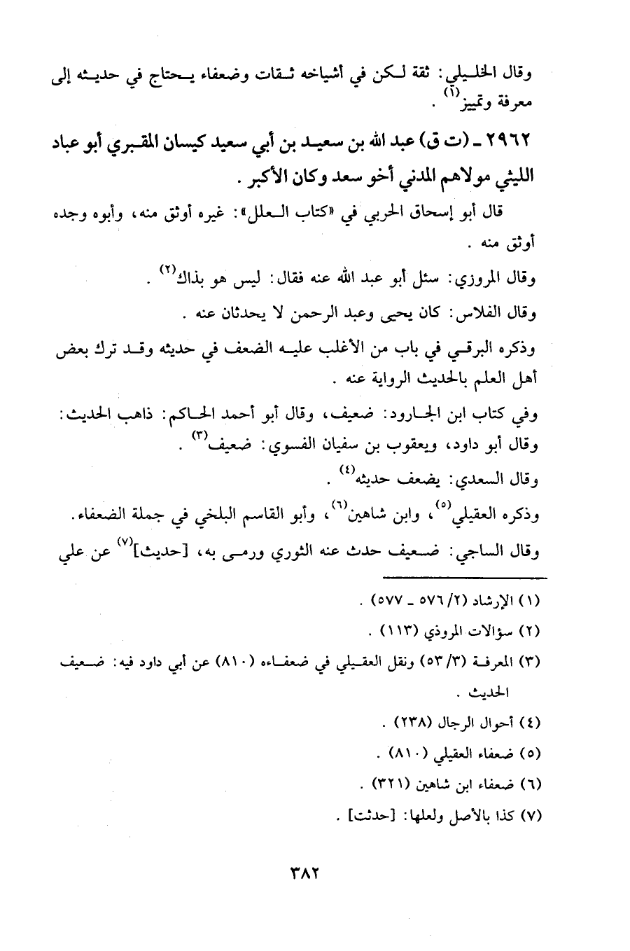 2962 - (ت ق) عبد الله بن سعيد بن أبي سعيد كيسان المقبري أبو عباد الليثي مولاهم المدني أخو سعد وكان الأكبر.