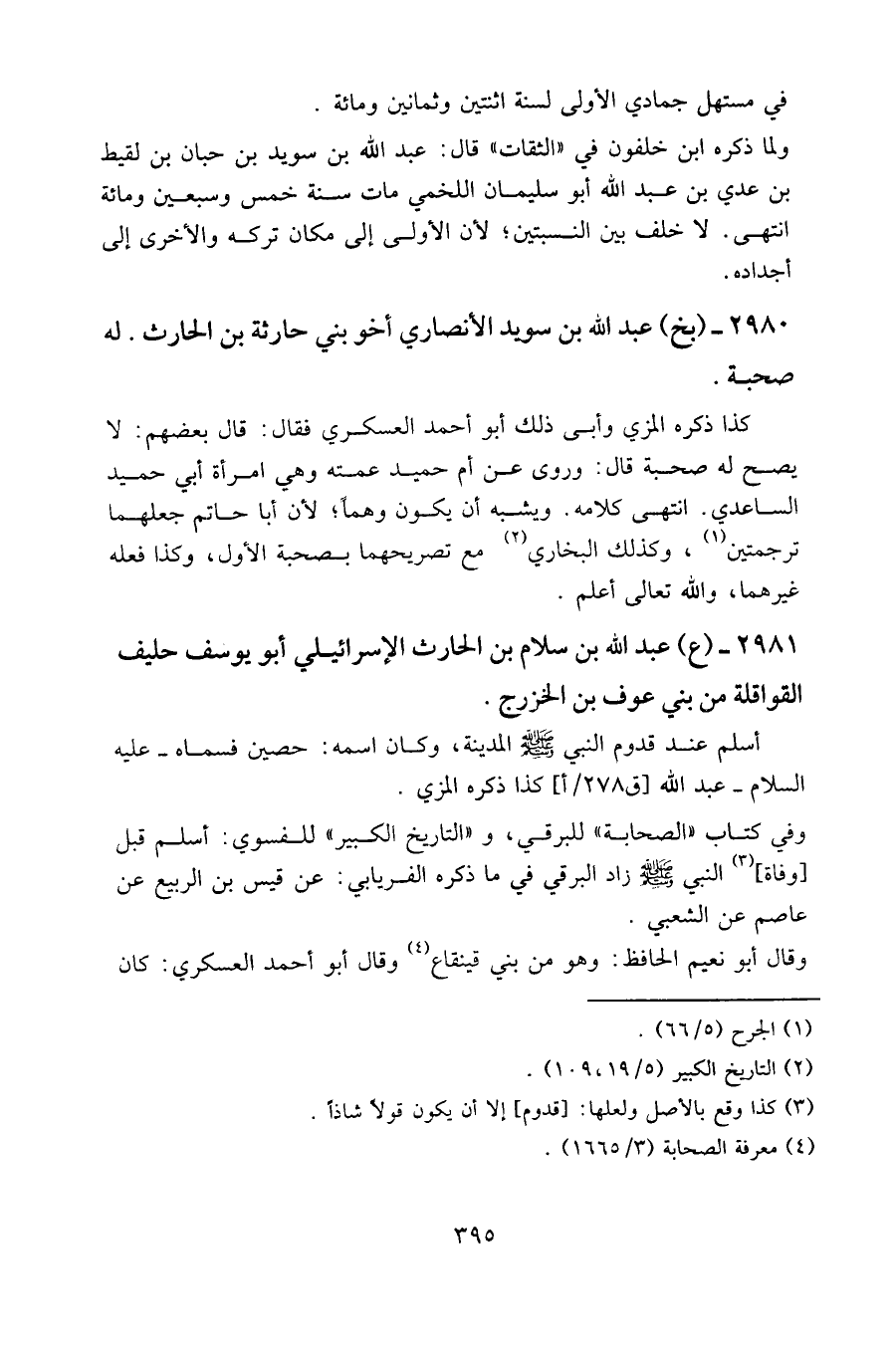 2981 - (ع) عبد الله بن سلام بن الحارث الإسرائيلي أبو يوسف حليف القواقلة من بني عوف بن الخزرج.