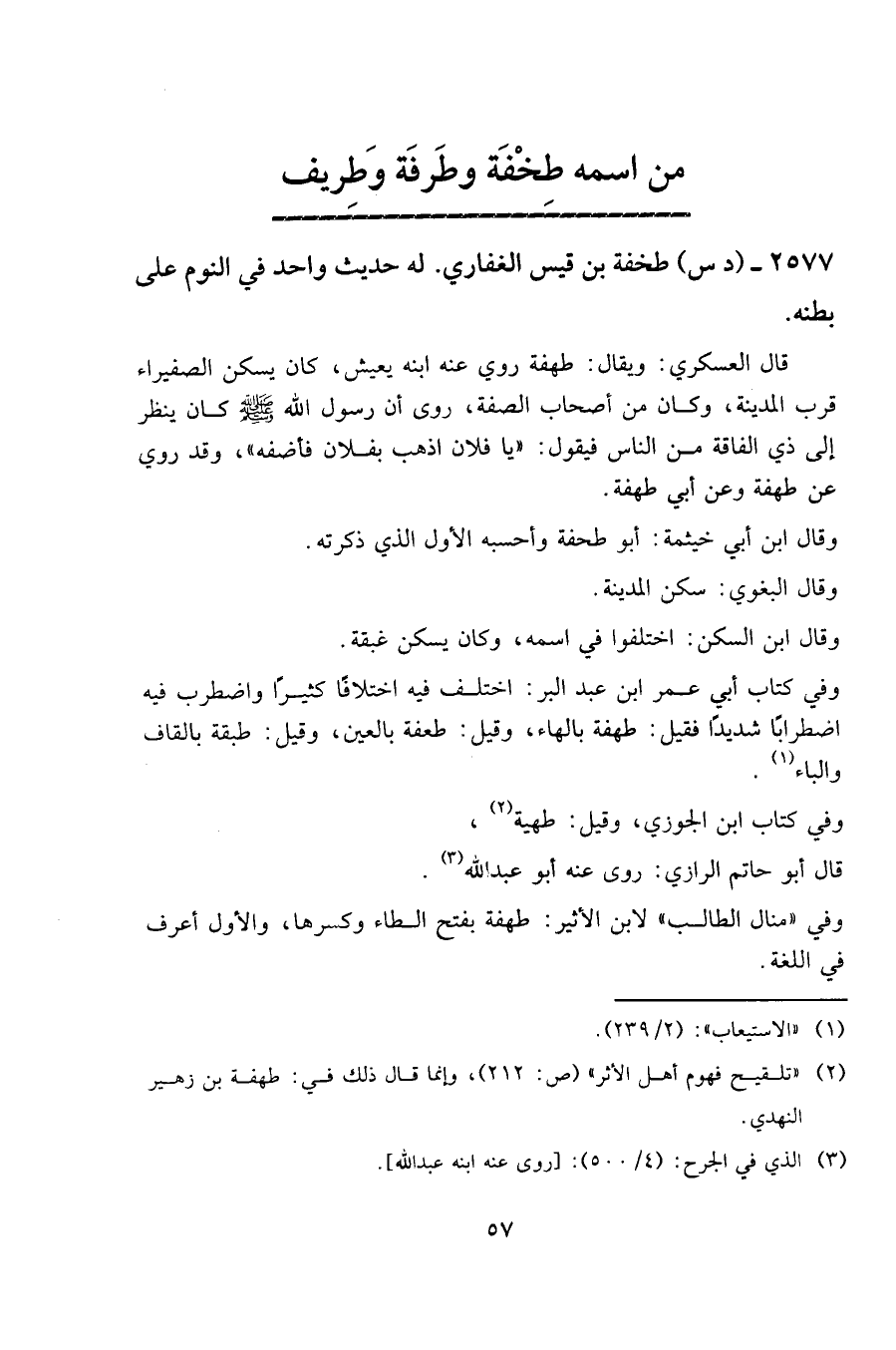 2577 - (د س) طخفة بن قيس الغفاري - له حديث واحد في النوم على بطنه.