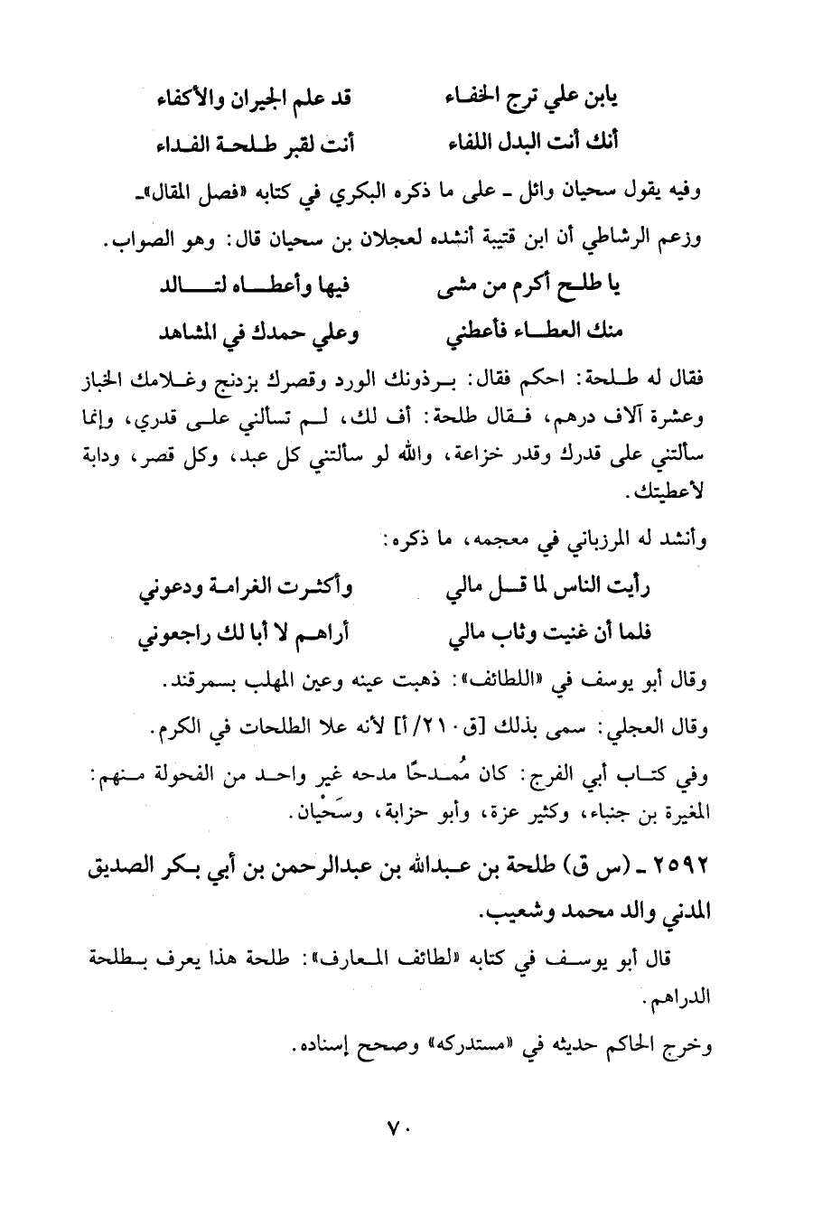 يا طلح أكرم من مشى ... فيها وأعطاه لتالد