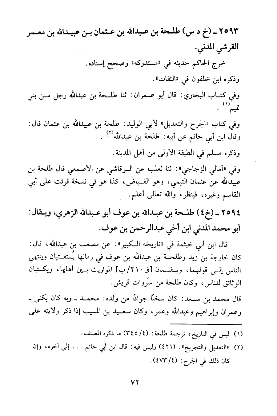 2593 - (خ د س) طلحة بن عبد الله بن عثمان بن عبيد الله بن معمر القرشي المدني.