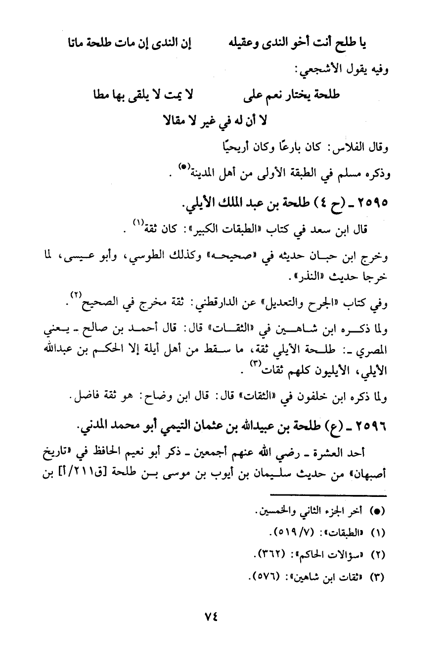 2596 - (ع) طلحة بن عبيد الله بن عثمان التيمي أبو محمد المدني.