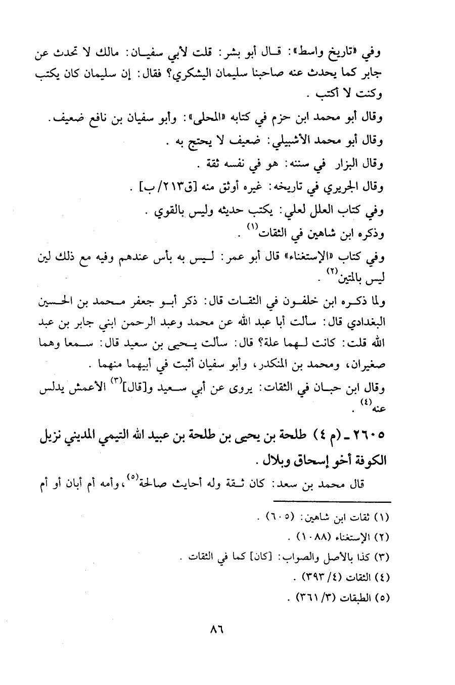 ولما ذكره ابن خلفون في الثقات قال: ذكر أبو جعفر محمد بن الحسين البغدادي قال: سألت أبا عبد الله عن محمد وعبد الرحمن ابني جابر بن عبد الله قلت: كانت لهما علة؟ قال: سألت يحيى بن سعيد قال: سمعا وهما صغيران، ومحمد بن المنكدر، وأبو سفيان أثبت في أبيهما منهما.