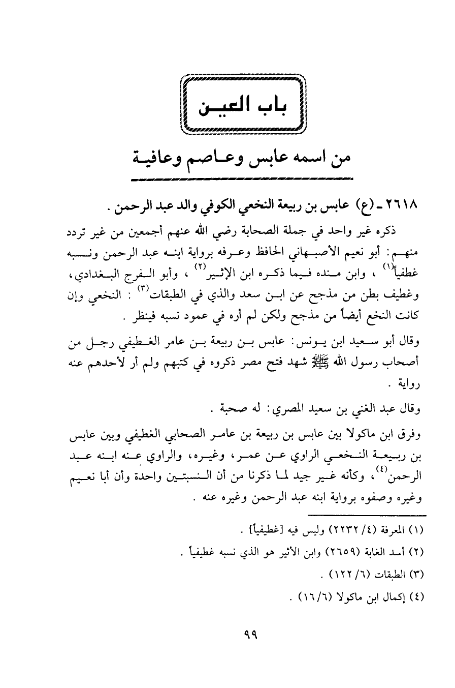 2618 - (ع) عابس بن ربيعة النخعي الكوفي والد عبد الرحمن.