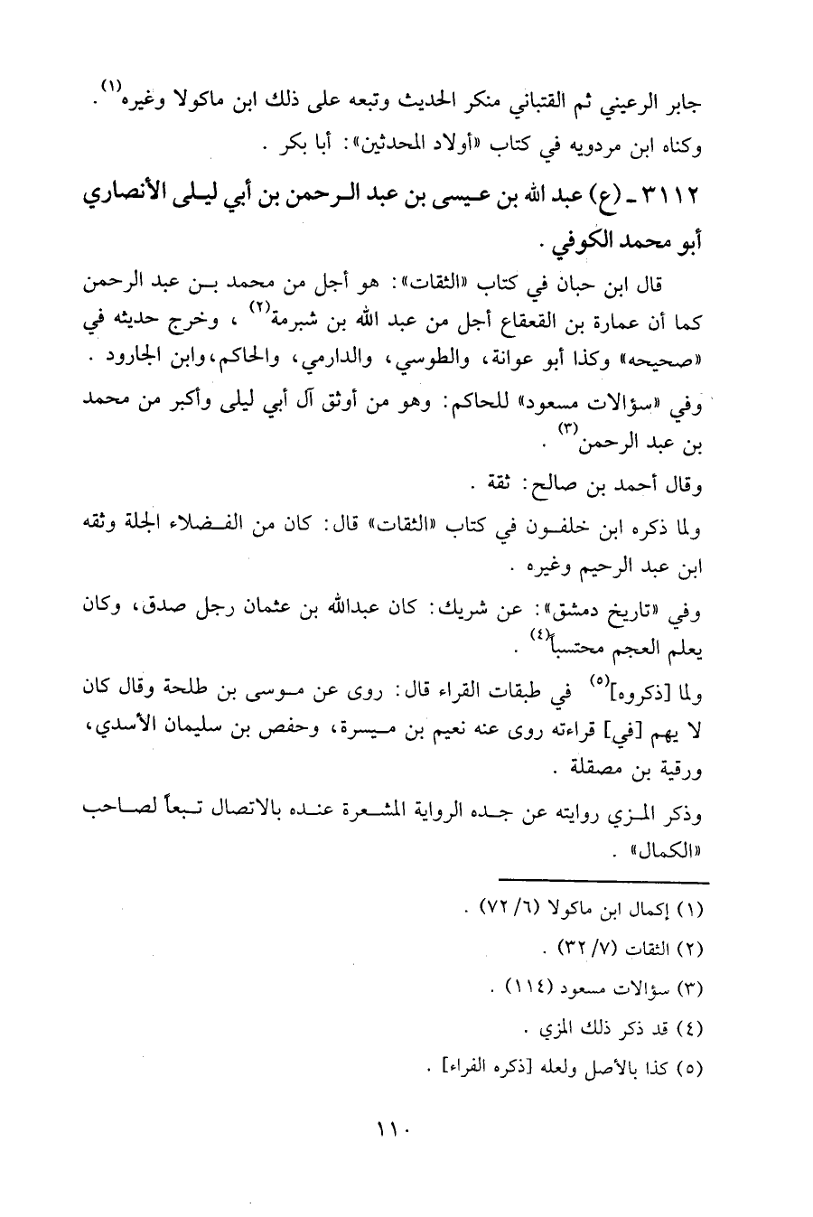 3112 - (ع) عبد الله بن عيسى بن عبد الرحمن بن أبي ليلى الأنصاري أبو محمد الكوفي.
