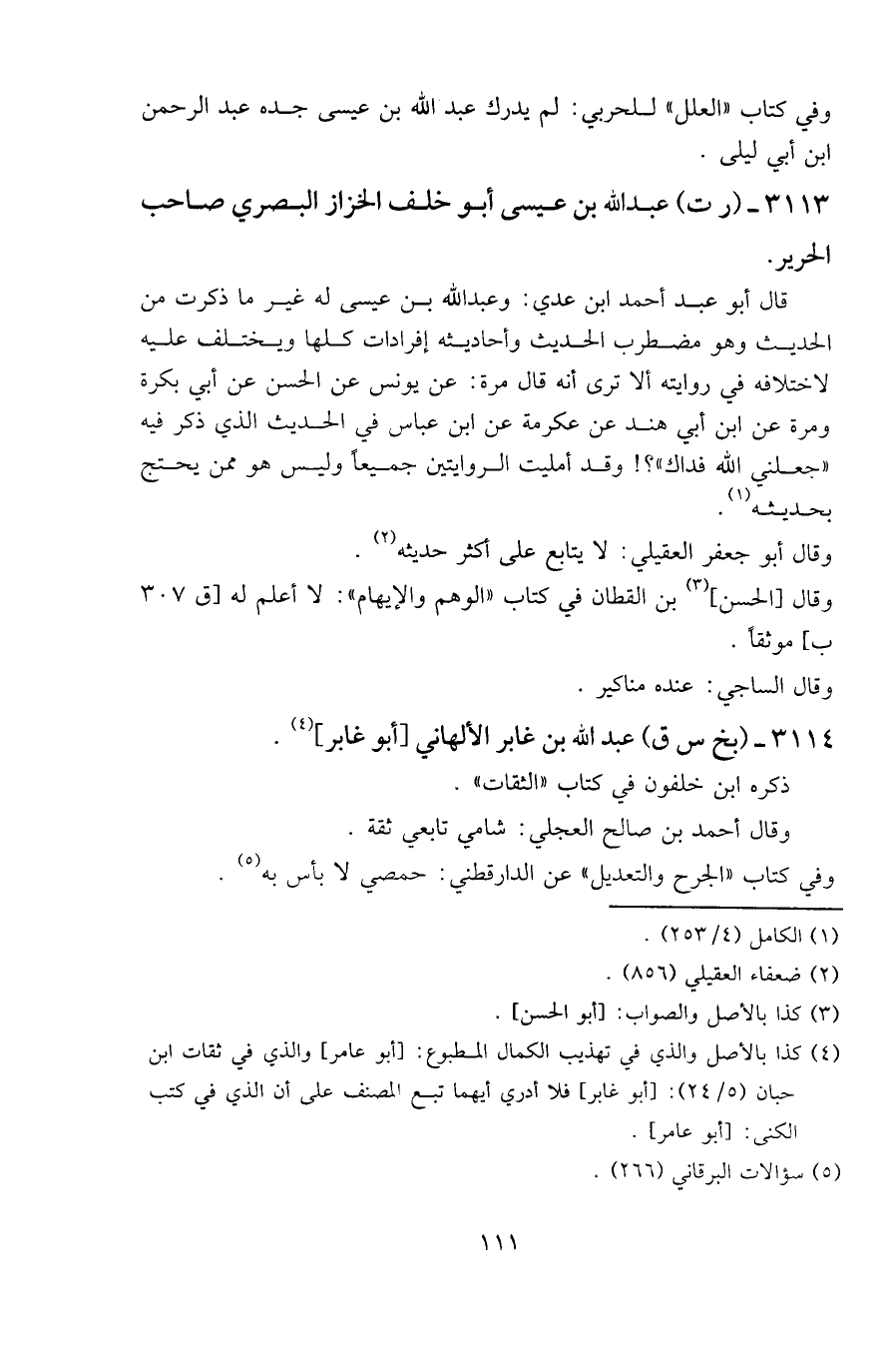 3113 - (ر ت) عبد الله بن عيسى أبو خلف الخزاز البصري صاحب الحرير.