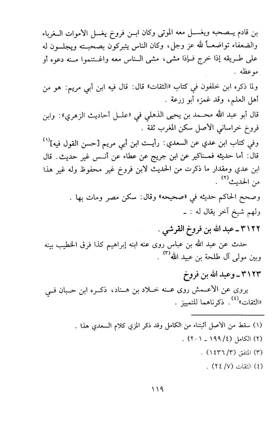 ولما ذكره ابن خلفون في كتاب " الثقات " قال: قال فيه ابن أبي مريم: هو من أهل العلم، وقد غمزه أبو زرعة.