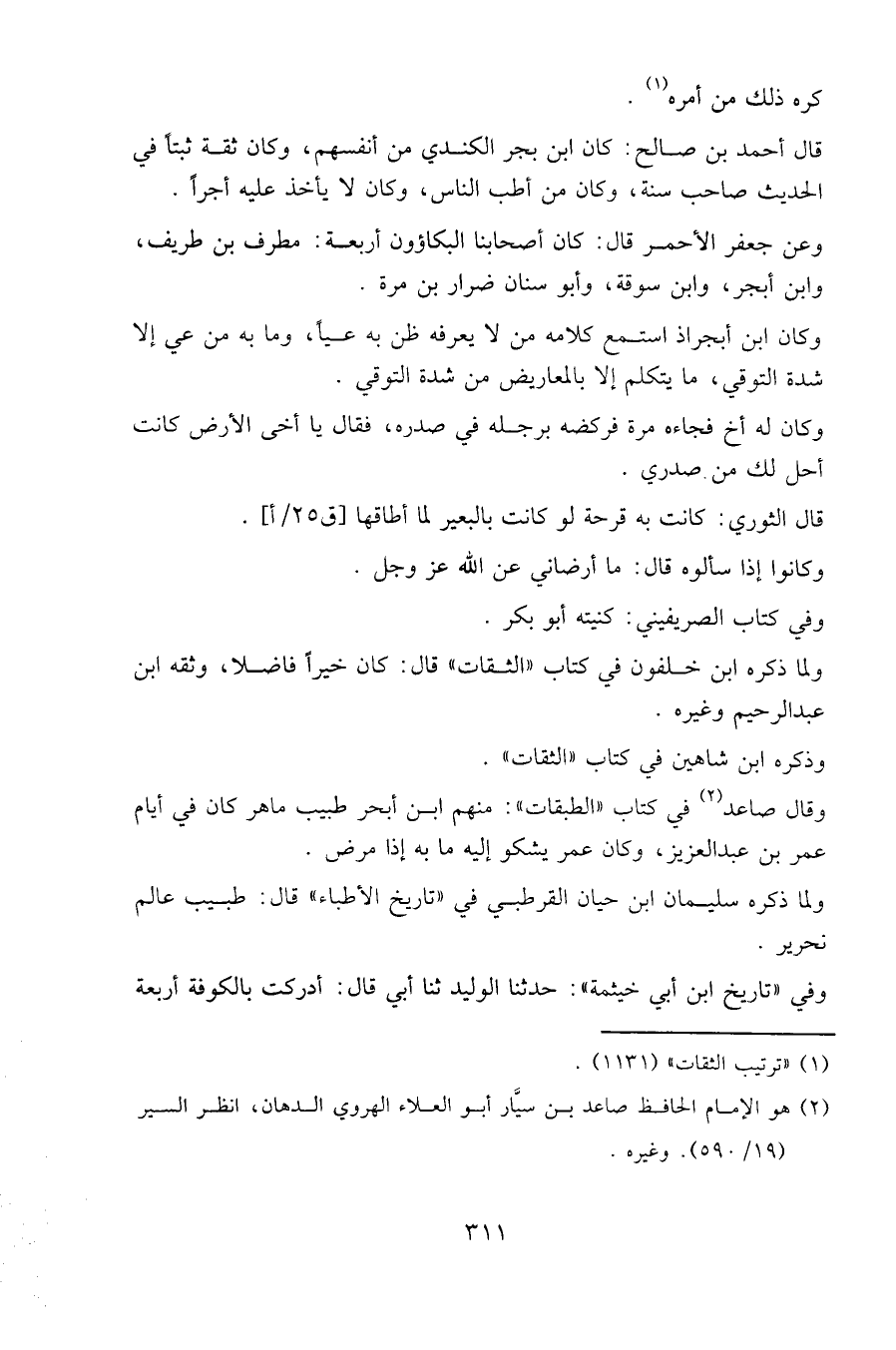 وفي: تاريخ ابن أبي خيثمة ": حدثنا الوليد ثنا أبي قال: أدركت بالكوفة أربعة