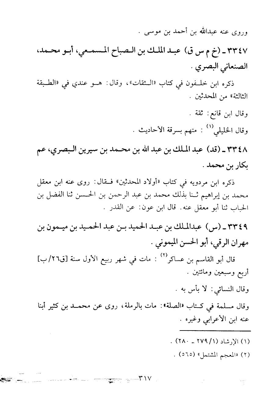 3349 - (س) عبد الملك بن عبد الحميد بن عبد الحميد بن ميمون بن مهران الرقي، أبو الحسن الميموني.