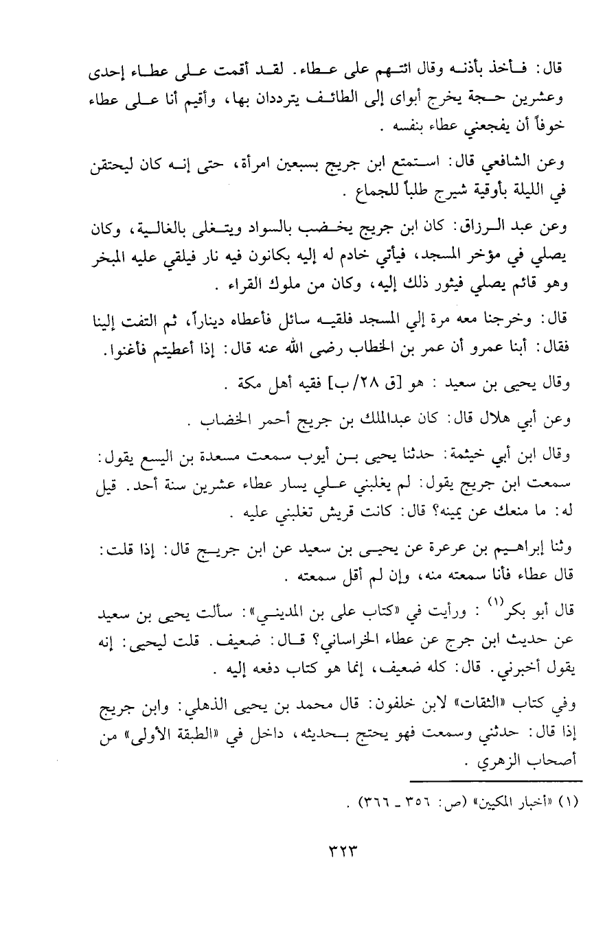 وثنا إبراهيم بن عرعرة عن يحيى بن سعيد عن ابن جريج قال: إذا قلت: قال عطاء فأنا سمعته منه، وإن لم أقل سمعته.