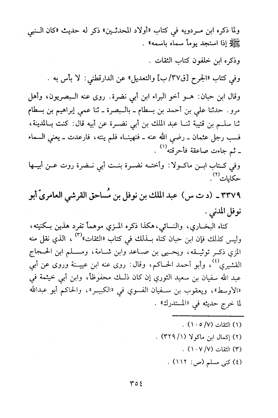 3379 - (د ت س) عبد الملك بن نوفل بن مساحق القرشي العامري أبو نوفل المدني.