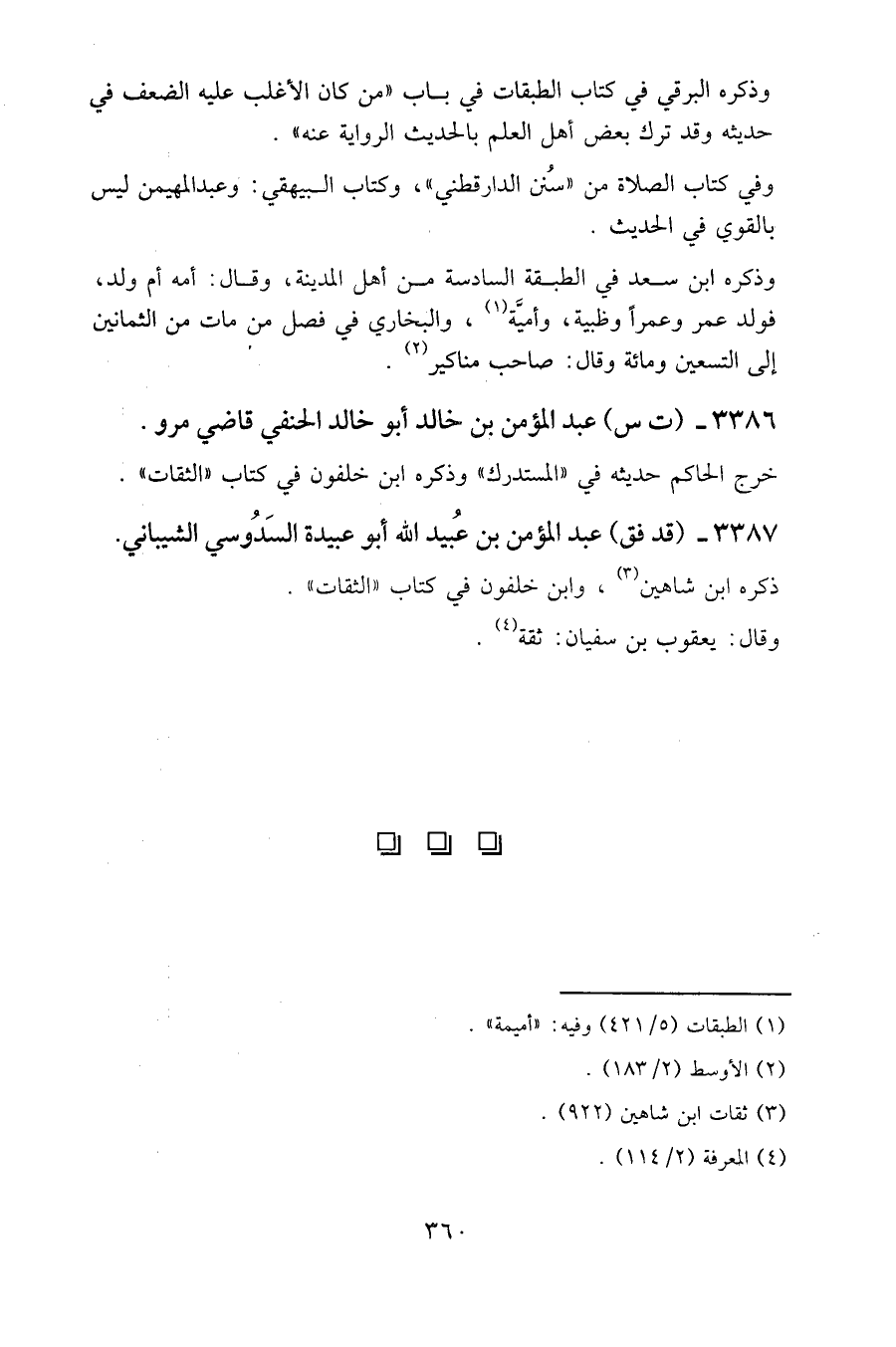 3387 - (قد فق) عبد المؤمن بن عبيد الله أبو عبيدة السدوسي الشيباني.