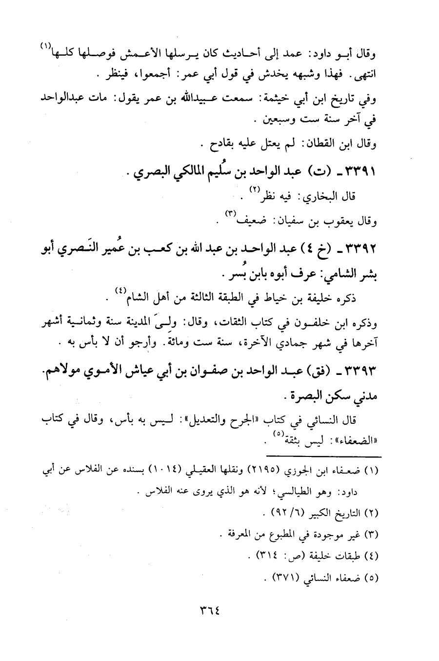 3392 - (خ4) عبد الواحد بن عبد الله بن كعب بن عمير النصري أبو بشر الشامي: عرف أبوه بابن بسر.