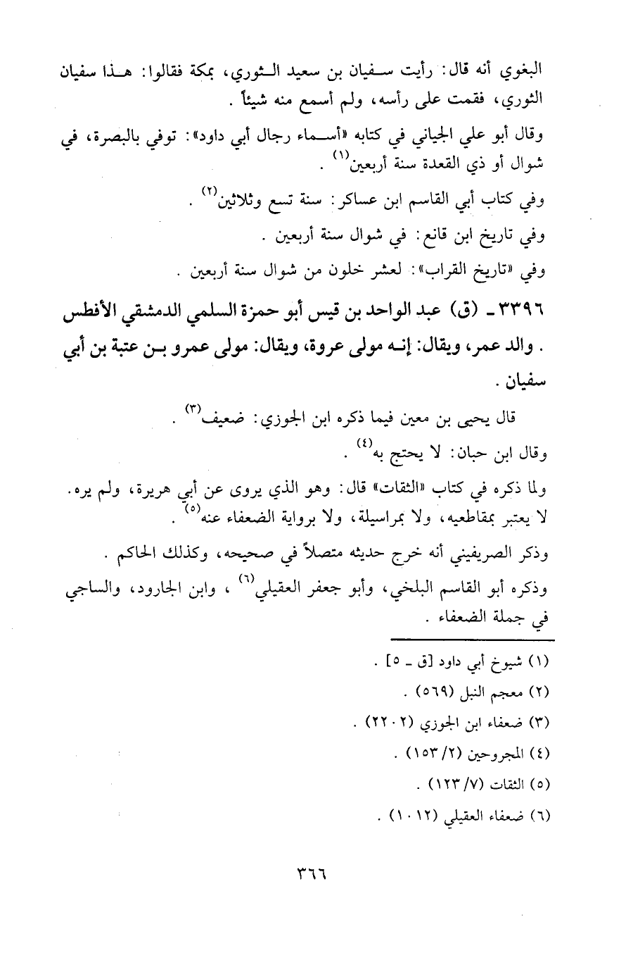 3396 - (ق) عبد الواحد بن قيس أبو حمزة السلمي الدمشقي الأفطس والد عمر، ويقال: إنه مولى عروة، ويقال: مولى عمرو بن عتبة بن أبي سفيان.