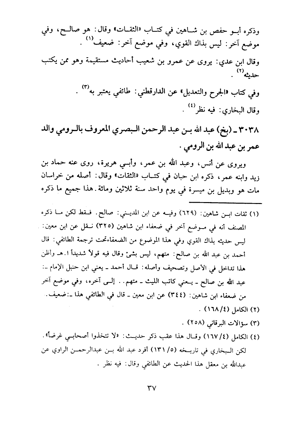 3038 - (بخ) عبد الله بن عبد الرحمن البصري المعروف بالرومي والد عمر بن عبد الله بن الرومي.