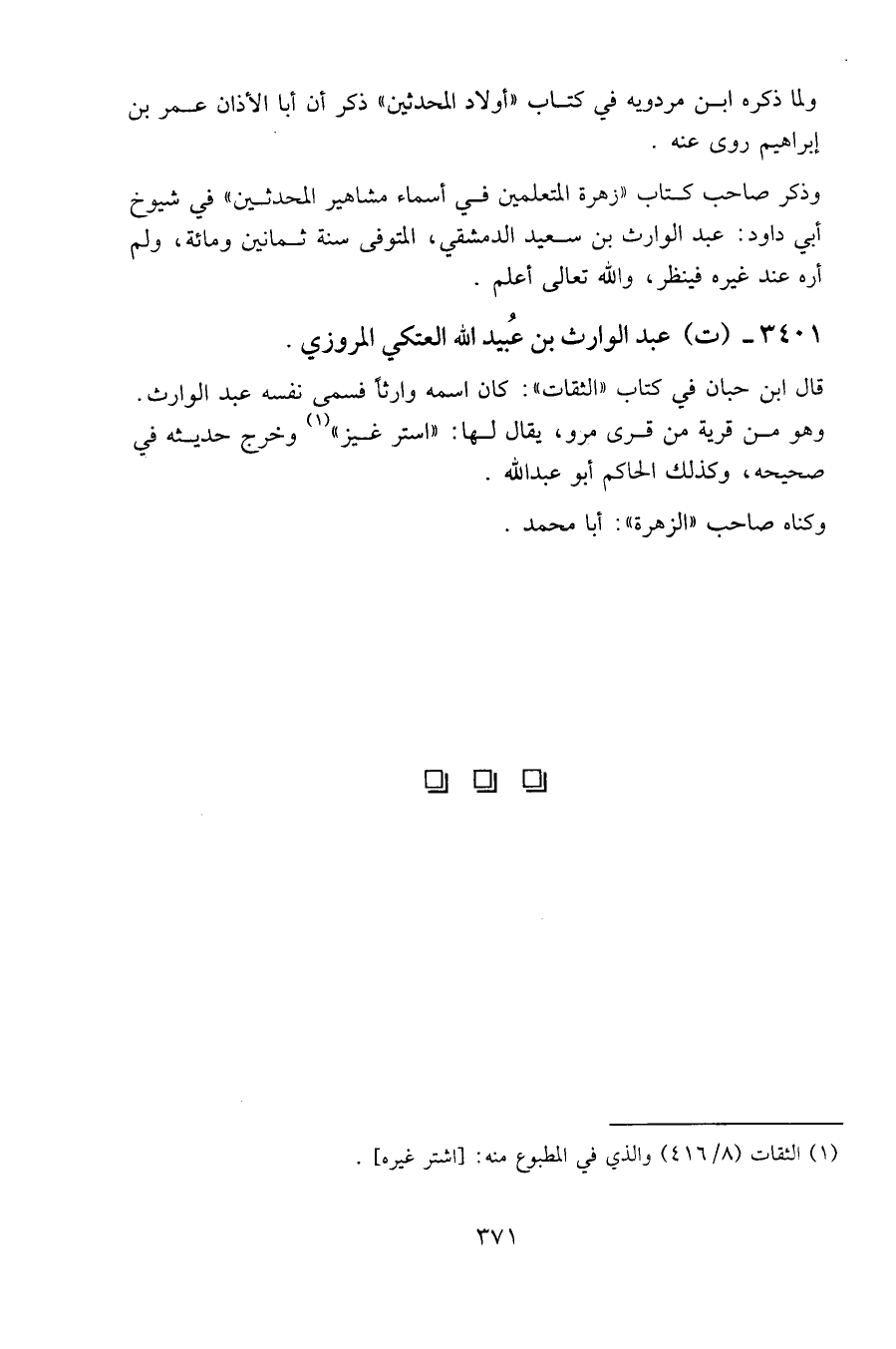 3401 - (ت) عبد الوارث بن عبيد الله العتكي المروزي.