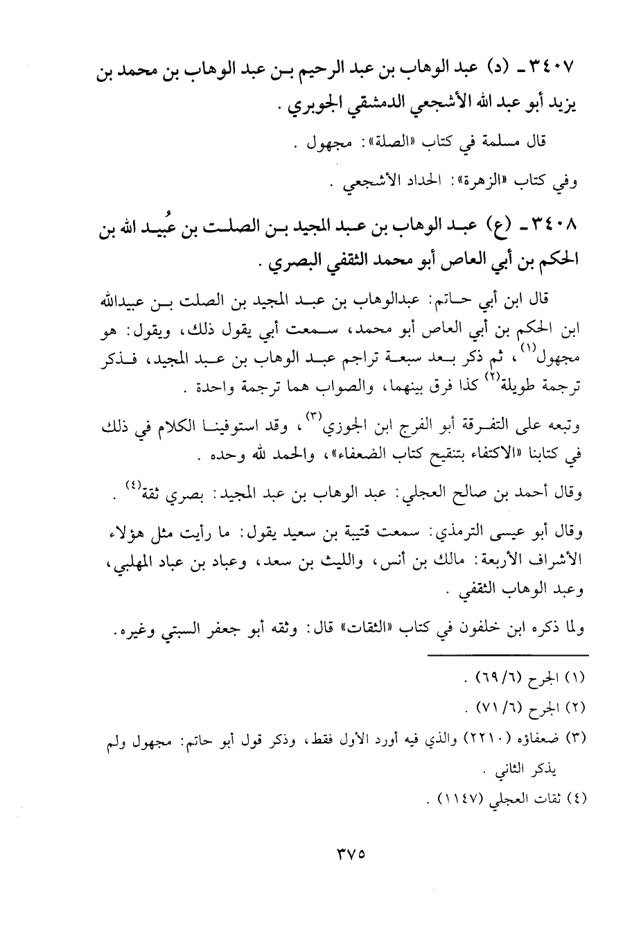 3408 - (ع) عبد الوهاب بن عبد المجيد بن الصلت بن عبيد الله بن الحكم بن أبي العاص أبو محمد الثقفي البصري.