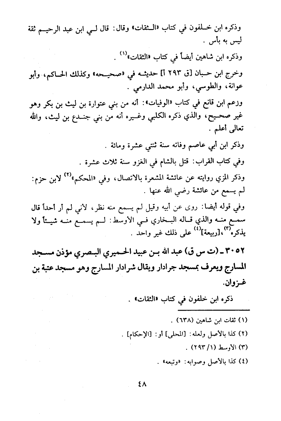 3052 - (ت س ق) عبد الله بن عبيد الحميري البصري مؤذن مسجد المسارج ويعرف بمسجد جرادار ويقال شرادار المسارج؛ وهو مسجد عتبة بن غزوان.