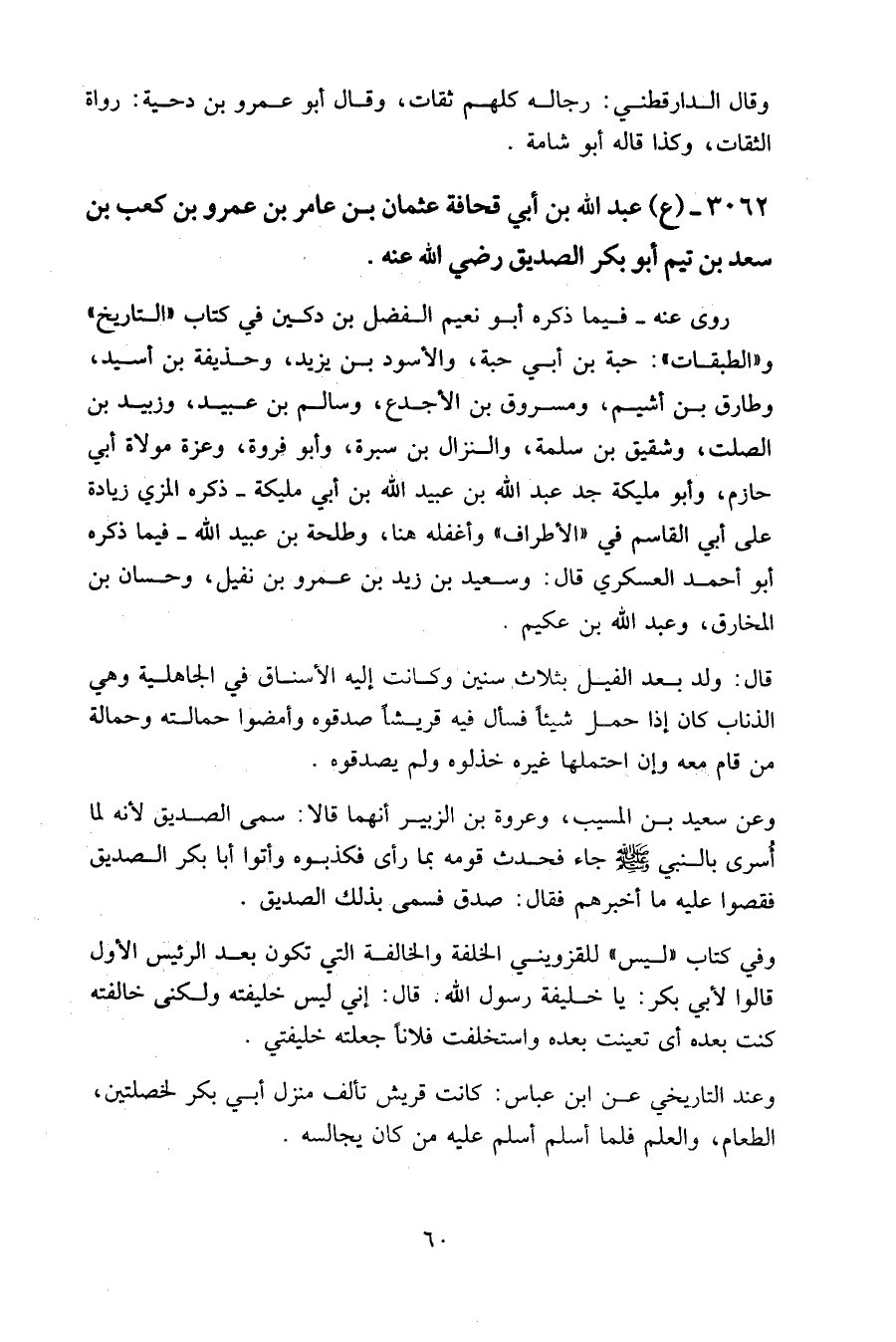 3062 - (ع) عبد الله بن أبي قحافة عثمان بن عامر بن عمرو بن كعب بن سعد بن تيم أبو بكر الصديق رضي الله عنه.