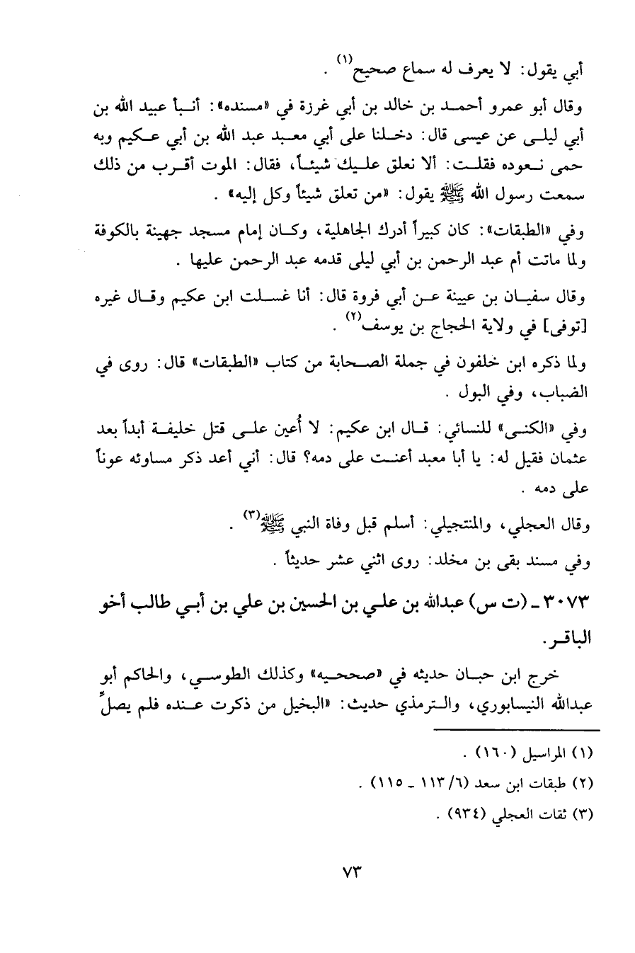 3073 - (ت س) عبد الله بن علي بن الحسين بن علي بن أبي طالب أخو الباقر.