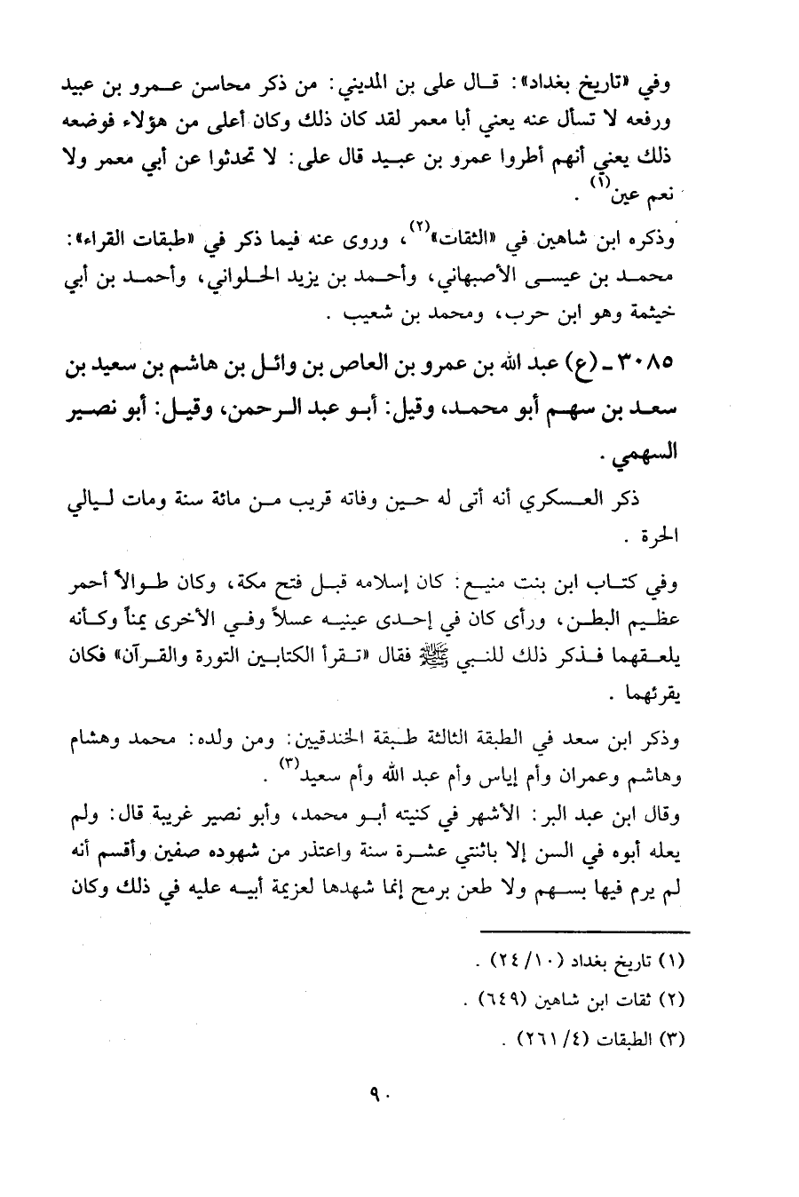 3085 - (ع) عبد الله بن عمرو بن العاص بن وائل بن هاشم بن سعيد بن سعد بن سهم أبو محمد، وقيل: أبو عبد الرحمن، وقيل: أبو نصير السهمي.
