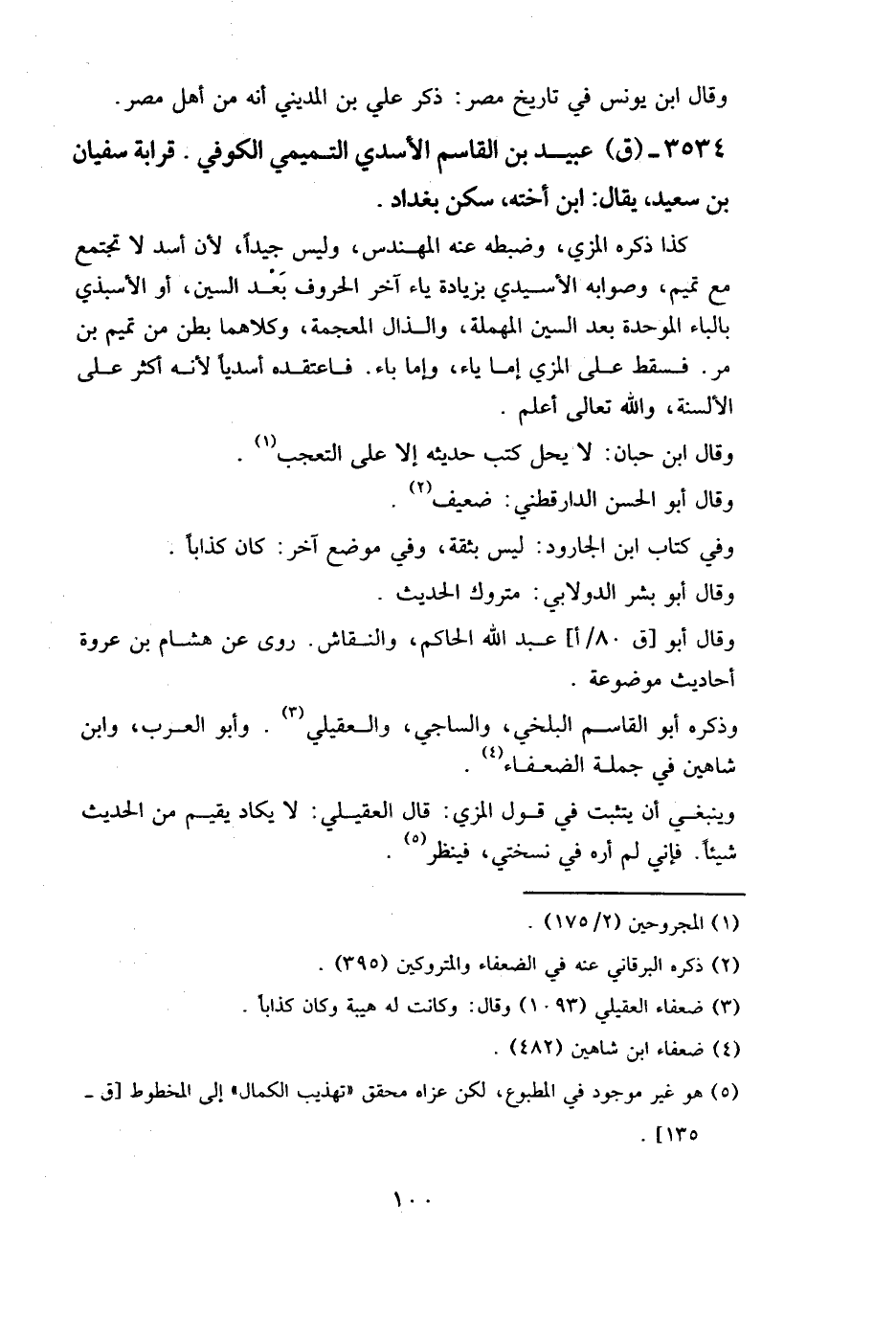 3534 - (ق) عبيد بن القاسم الأسدي التميمي الكوفي. قرابة سفيان بن سعيد، يقال: ابن أخته، سكن بغداد.
