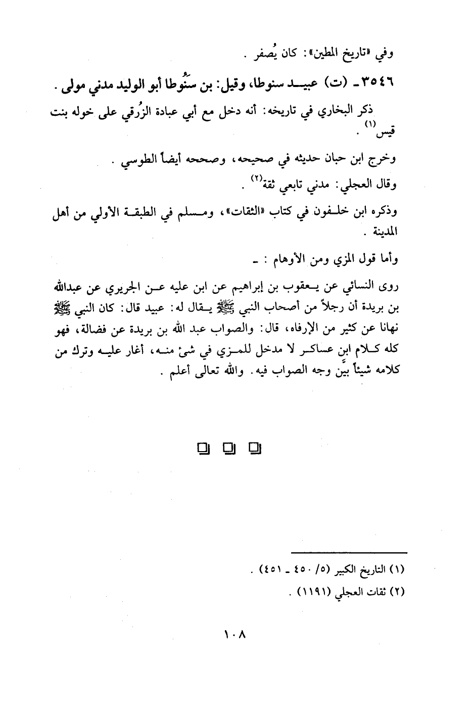 3546 - (ت) عبيد سنوطا، وقيل: ابن سنوطا أبو الوليد مدني مولى.