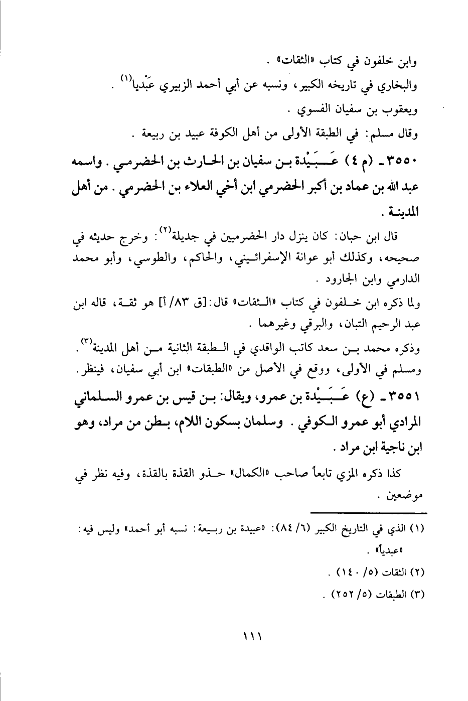 3551 - (ع) عبيدة بن عمرو، ويقال: بن قيس بن عمرو السلماني المرادي أبو عمرو الكوفي. وسلمان بسكون اللام، بطن من مراد، وهو ابن ناجية بن مراد.