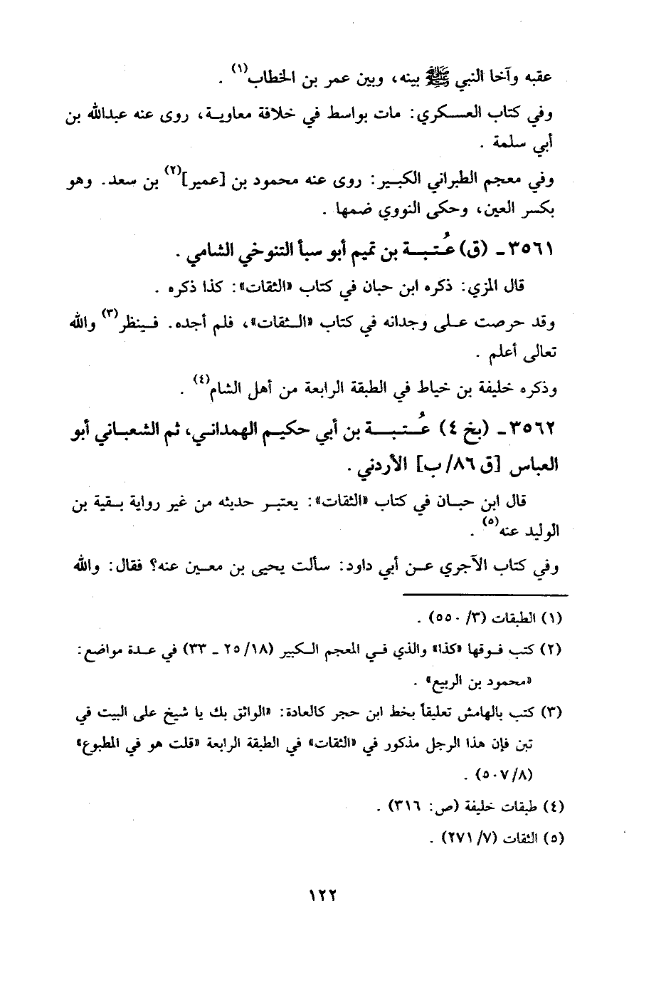3562 - (بخ 4) عتبة بن أبي حكيم الهمداني، ثم الشعباني أبو العباس [ق 86 / ب] الأردني.
