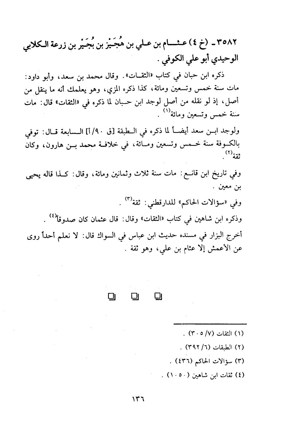 3582 - (خ 4) عثام بن علي بن هجيز بن بجير بن زرعة الكلابي الوحيدي أبو علي الكوفي.