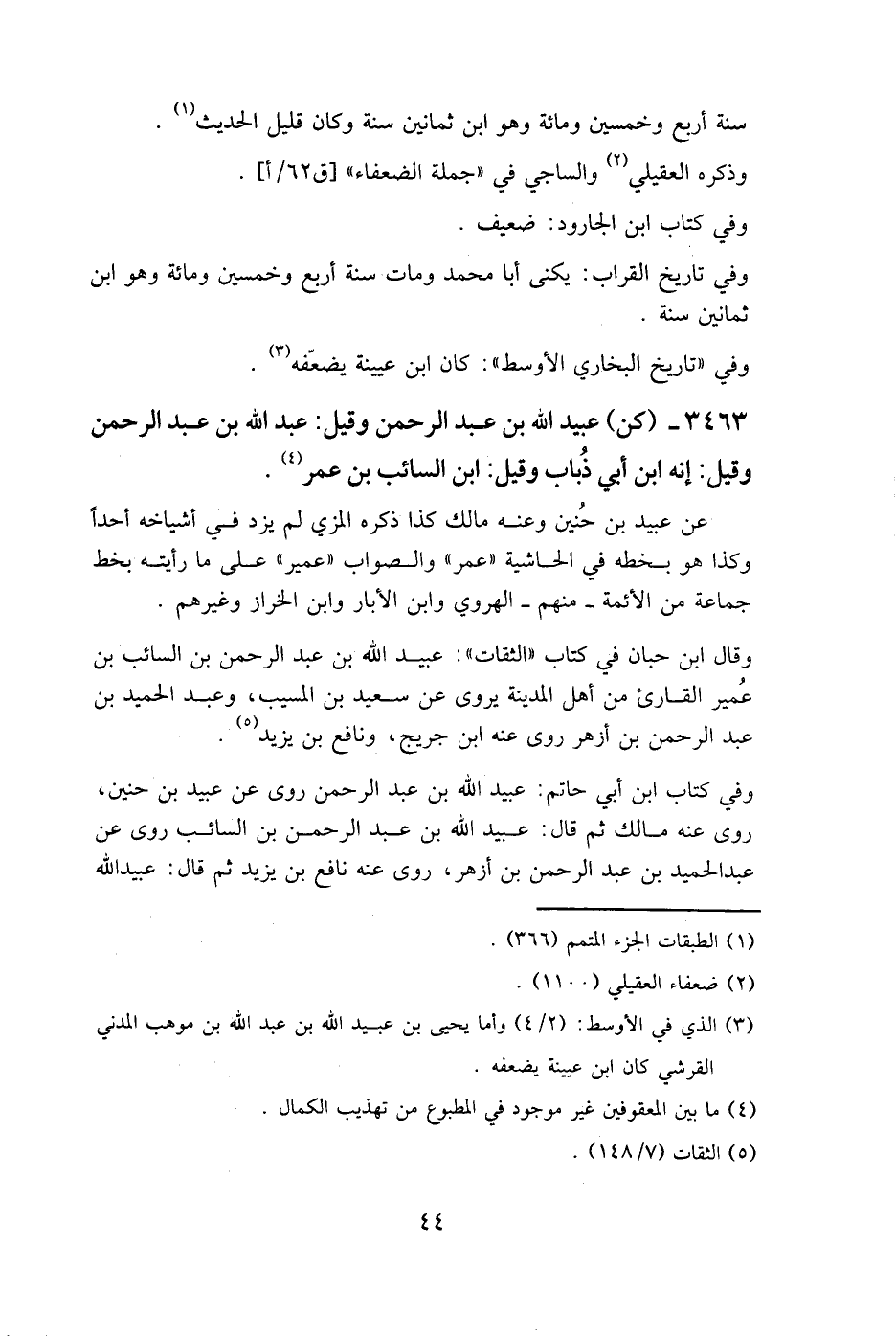 3463 - (كن) عبيد الله بن عبد الرحمن، وقيل: عبد الله بن عبد الرحمن، وقيل: إنه ابن أبي ذباب، وقيل: ابن السائب بن عمر.