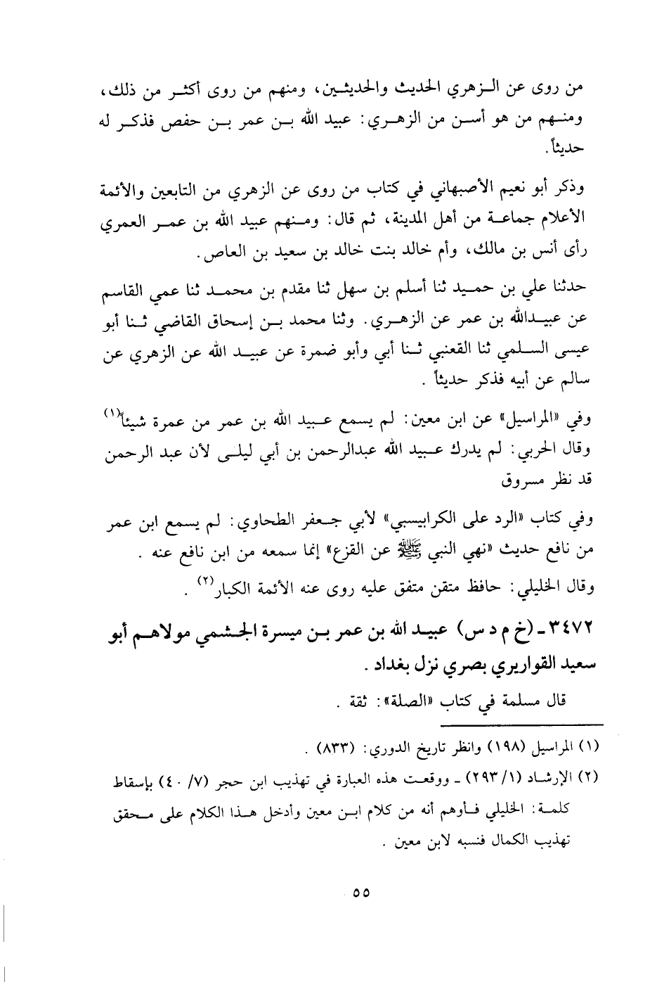 3472 - (خ م د س) عبيد الله بن عمر بن ميسرة الجشمي مولاهم أبو سعيد القواريري بصري نزل بغداد.
