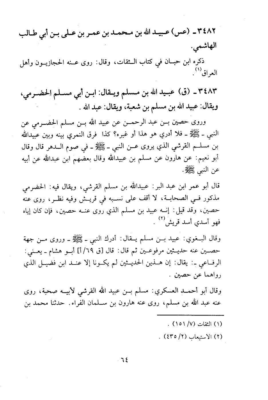 3482 - (عس) عبيد الله بن محمد بن عمر بن علي بن أبي طالب الهاشمي.