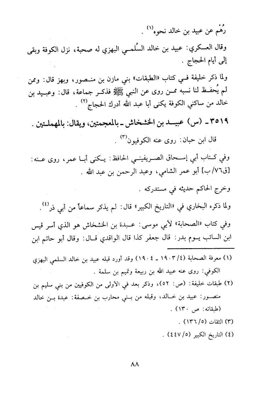 3519 - (س) عبيد بن الخشخاش بالمعجمتين، ويقال: بالمهملتين.