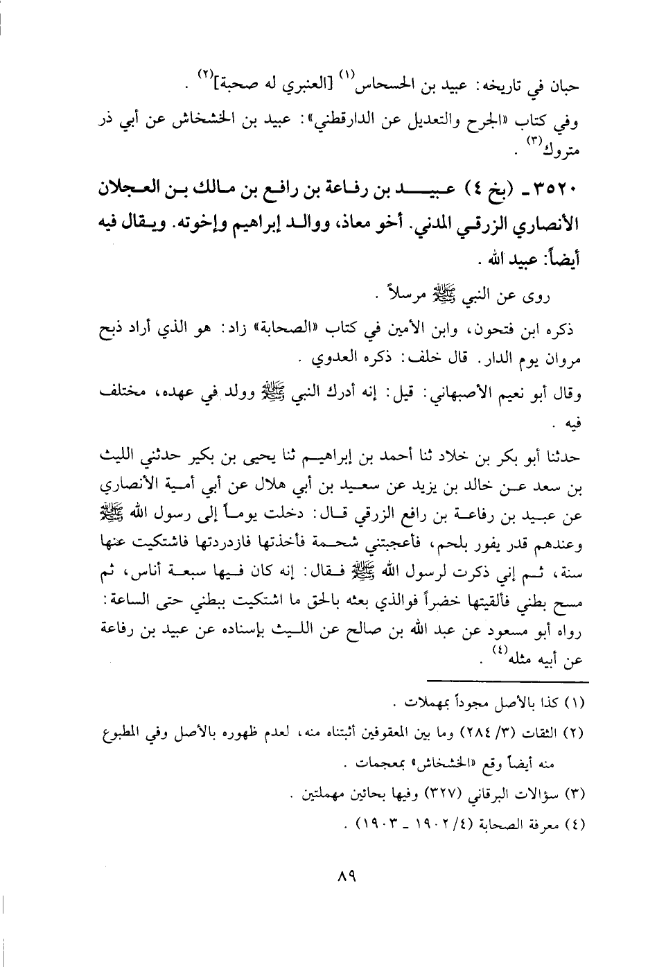 3520 - (بخ 4) عبيد بن رفاعة بن رافع بن مالك بن العجلان الأنصاري الزرقي المدني. أخو معاذ، ووالد إبراهيم وإخوته. ويقال فيه أيضا: عبيد الله.