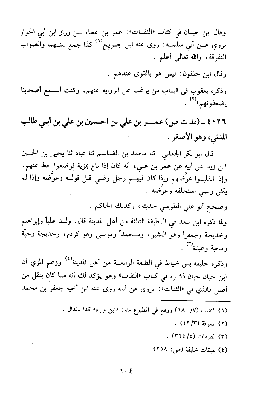 4026 - (مد ت ص) عمر بن علي بن الحسين بن علي بن أبي طالب المدني، وهو الأصغر.