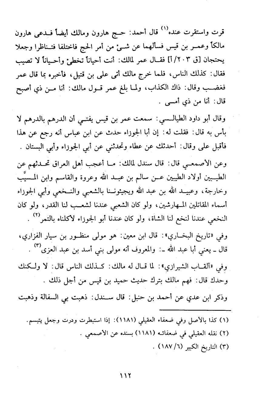 وعن الأصمعي قال: قال سندل لمالك: ما أعجب أهل العراق تحدثهم عن الطيبين أولاد الطيبين عن سالم بن عبد الله وعروة والقاسم وابن المسيب وخارجة، وعبيد الله بن عبد الله ويجيئوننا بالشعبي والنخعي وأبي الجوزاء أسماء المقاتلين المهارشين، ولو كان الشعبي عندنا لشعب لنا القدر، ولو كان النخعي عندنا لنخع لنا الشاة، ولو كان عندنا أبو الجوزاء لأكلناه بالتمر.