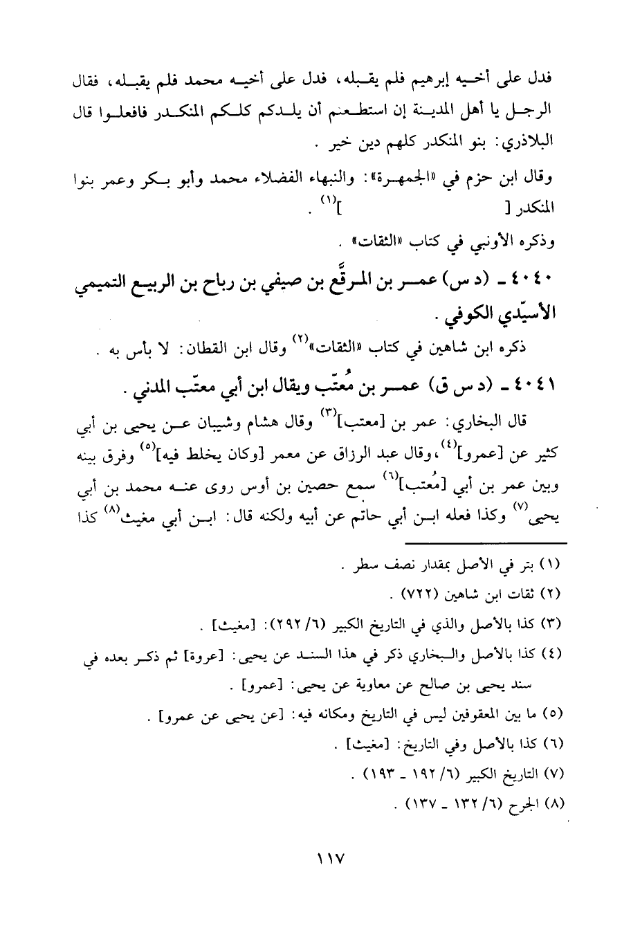 4040 - (د س) عمر بن المرقع بن صيفي بن رباح بن الربيع التميمي الأسيدي الكوفي.