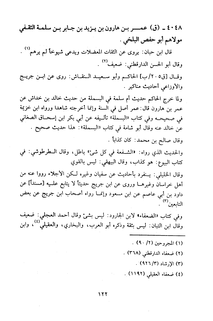 4048 - (ق) عمر بن هارون بن يزيد بن جابر بن سلمة الثقفي مولاهم أبو حفص البلخي.