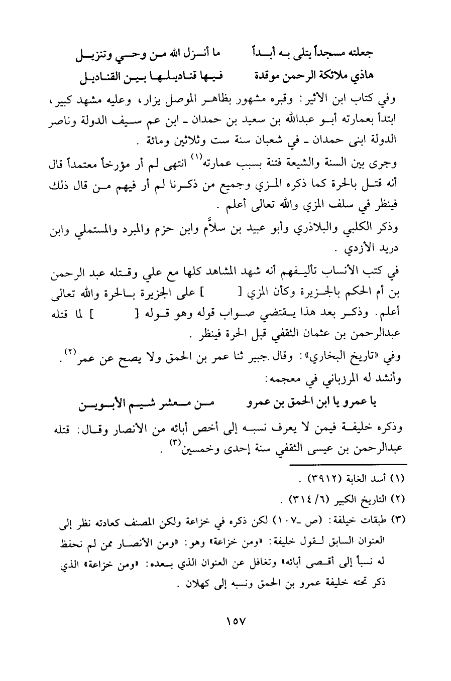 وفي " تاريخ البخاري ": وقال جبير، ثنا عمر بن الحمق ولا يصح عن عمر وأنشد له المرزباني في معجمه: