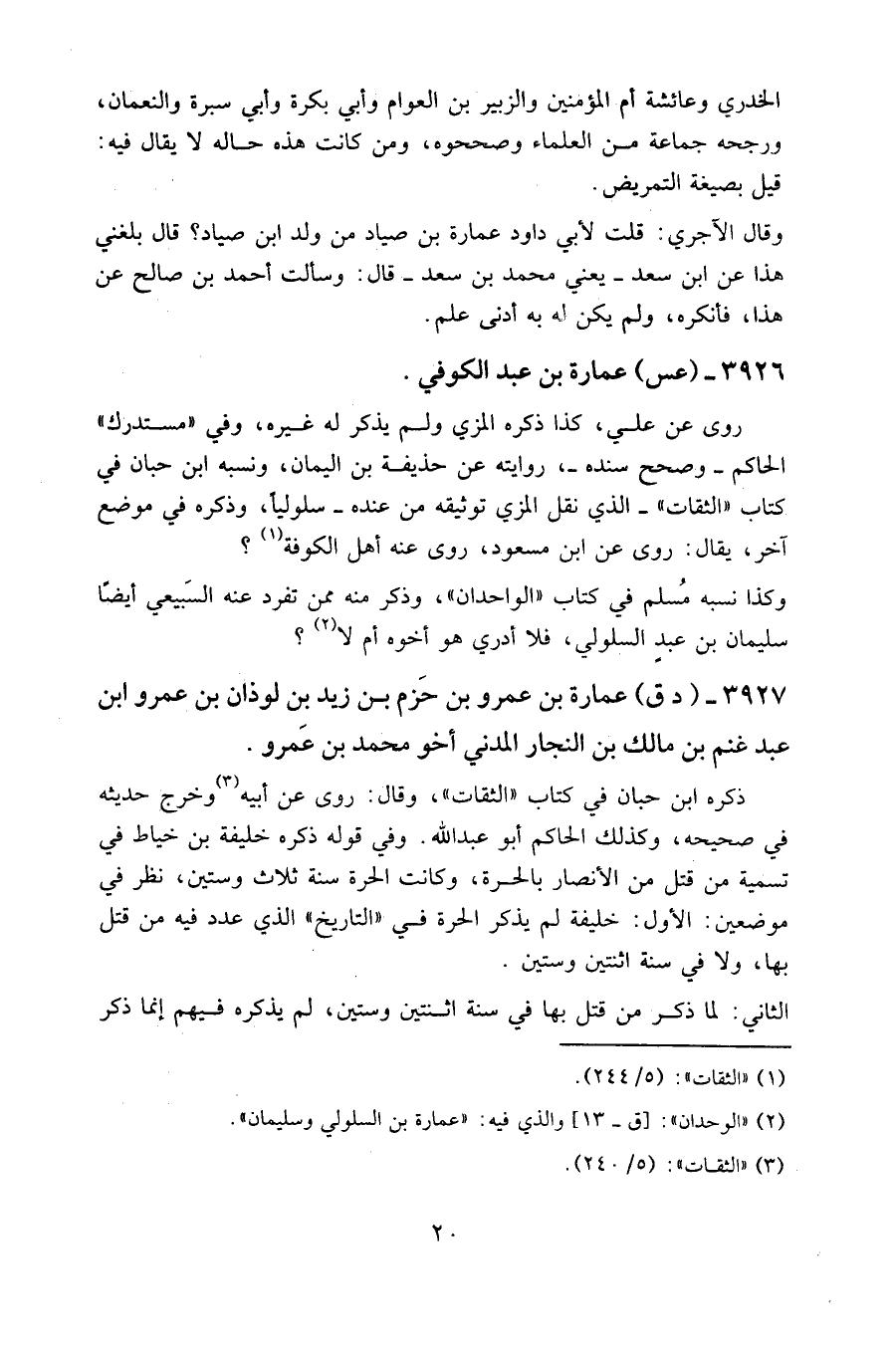 وقال الآجري: قلت لأبي داود عمارة بن صياد من ولد ابن صياد؟ قال بلغني هذا عن ابن سعد – يعني محمد بن سعد – قال: وسألت أحمد بن صالح عن هذا، فأنكره، ولم يكن له به أدنى علم.