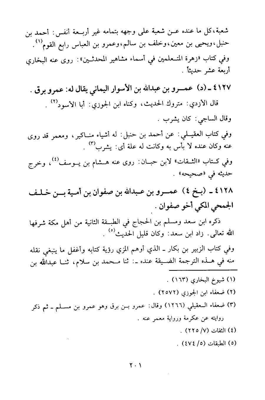 شعبة، كل ما عنده عن شعبة على وجهه بتمامه غير أربعة أنفس: أحمد بن حنبل، ويحيى بن معين، وخلف بن سالم، وعمرو بن العباس رابع القوم.