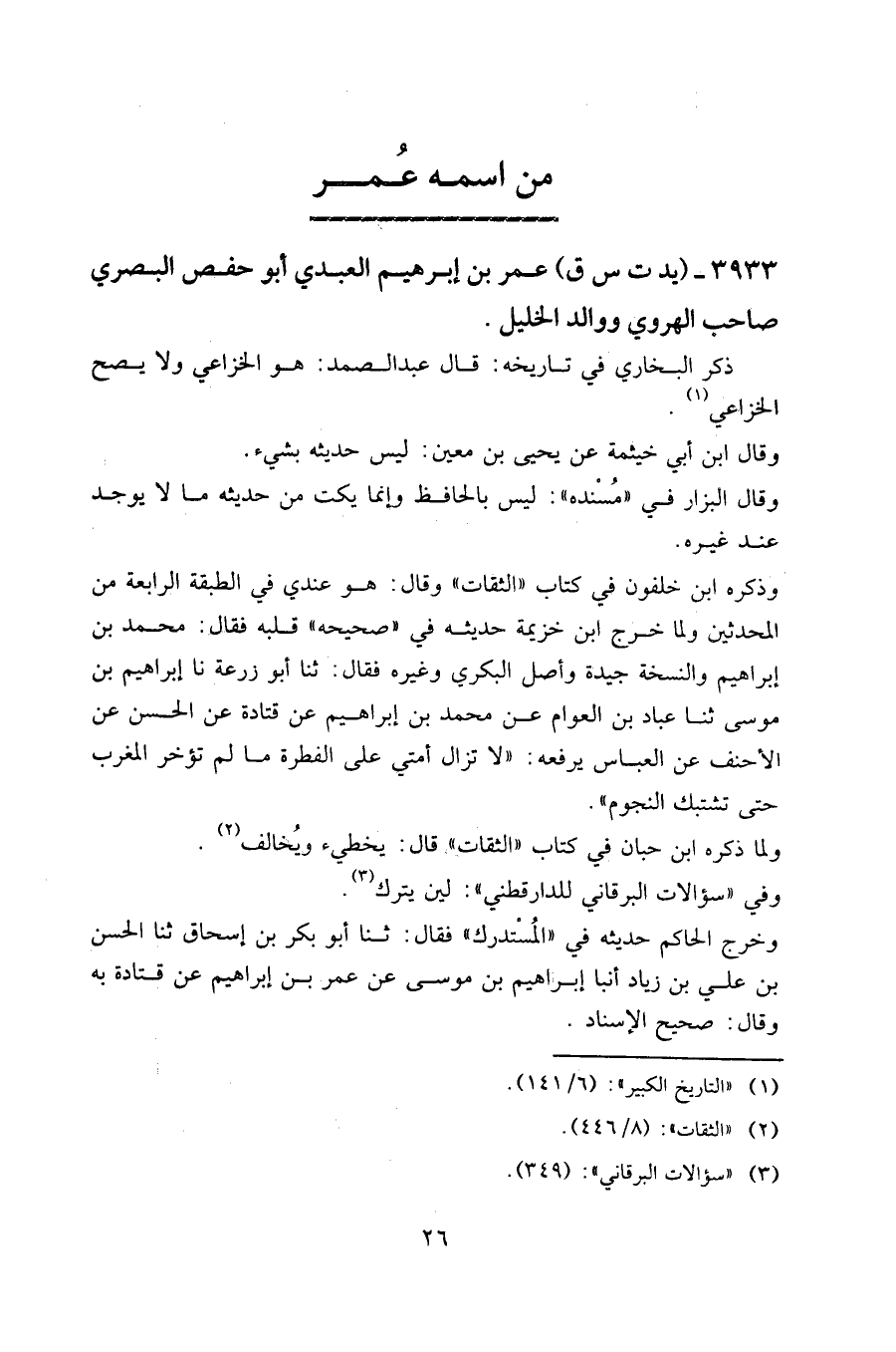 3933 - (يد ت س ق) عمر بن إبراهيم العبدي أبو حفص البصري صاحب الهروي ووالد الخليل.