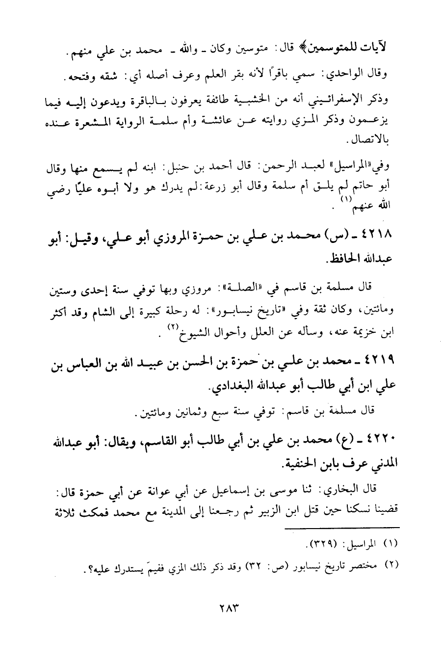 4219 - محمد بن علي بن حمزة بن الحسن بن عبيد الله بن العباس بن علي ابن أبي طالب أبو عبد الله البغدادي.