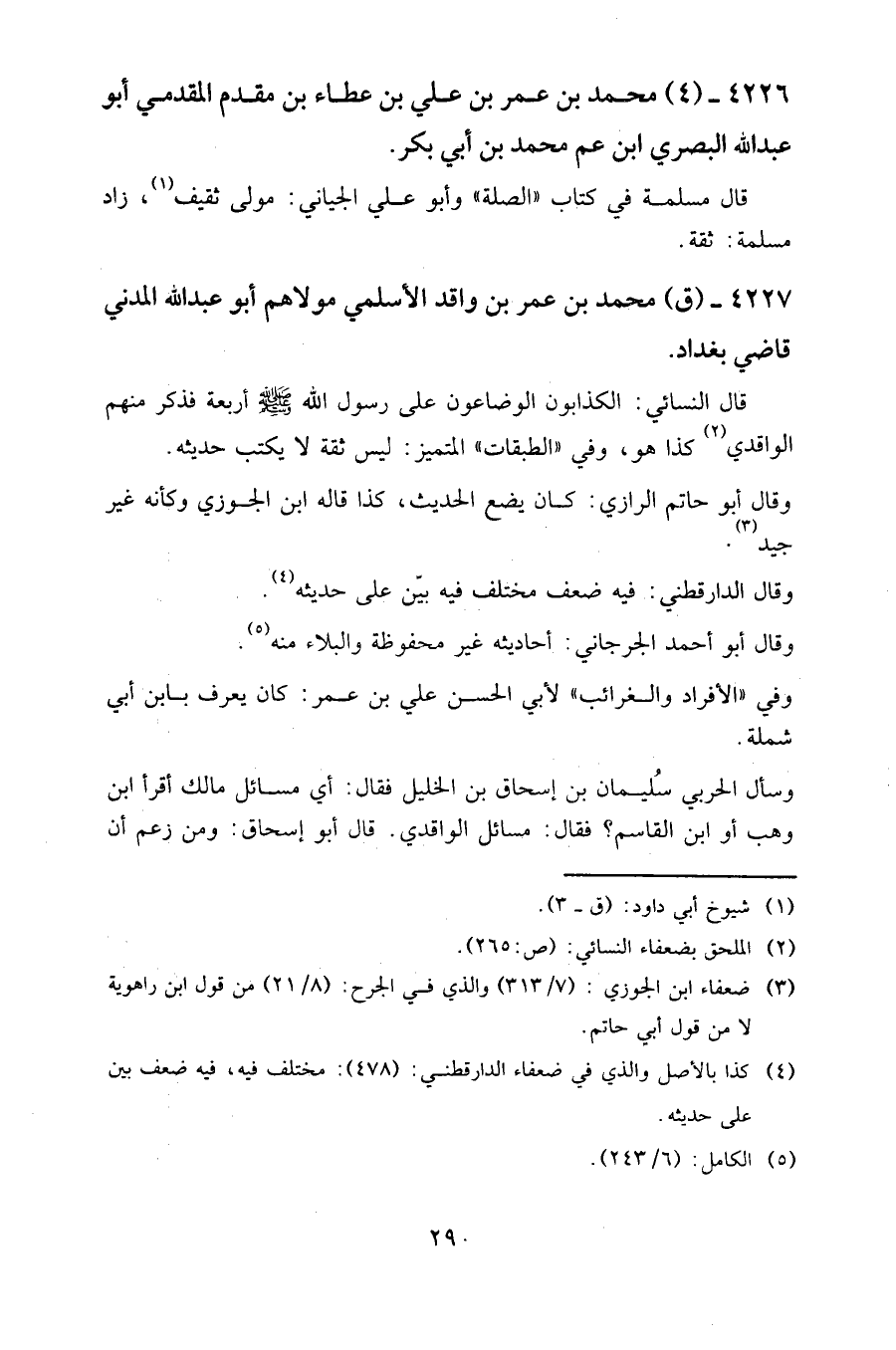4227 - (ق) محمد بن عمر بن واقد الأسلمي مولاهم أبو عبد الله المدني قاضي بغداد.