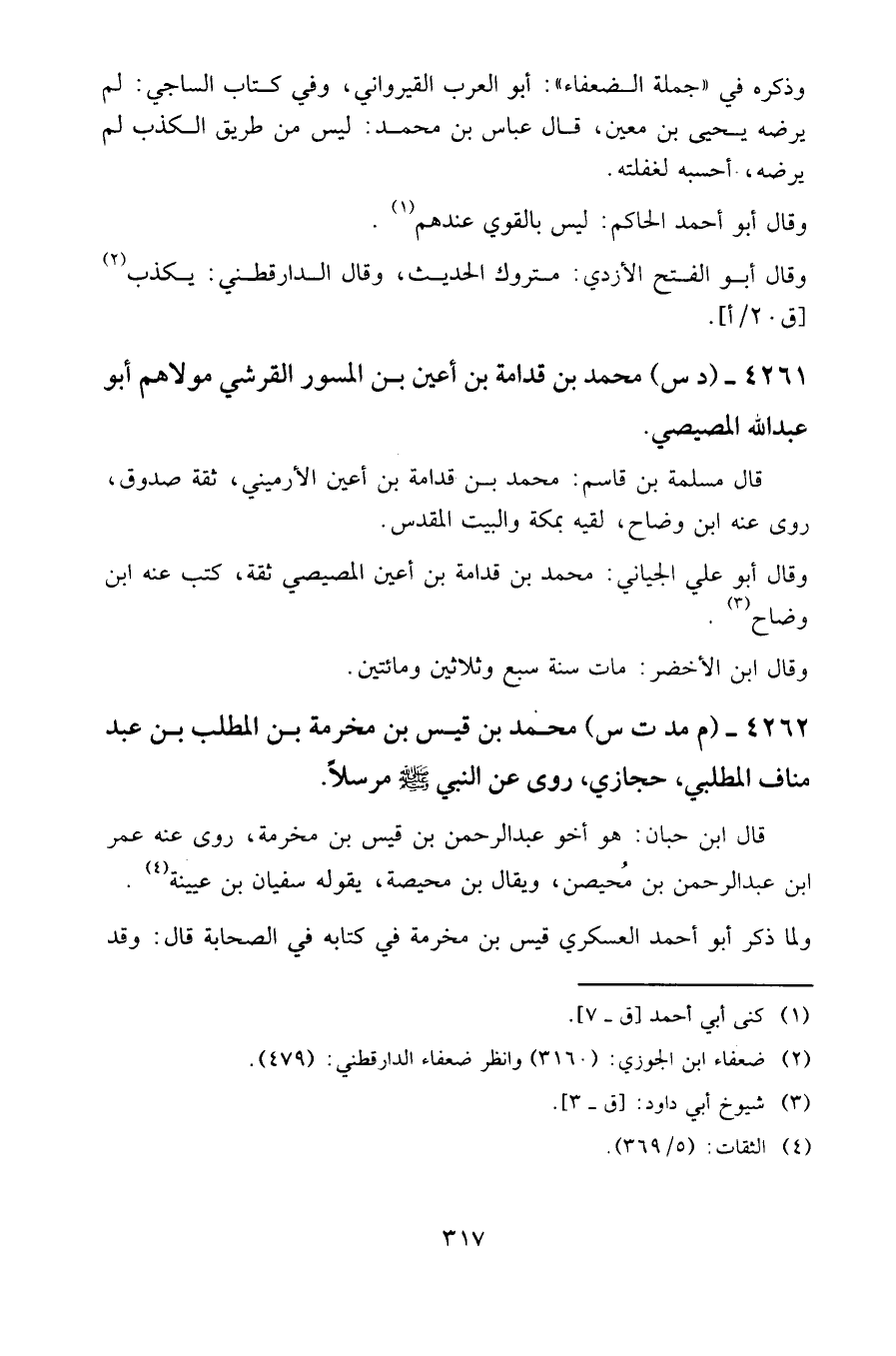 4261 - (د س) محمد بن قدامة بن أعين بن المسور القرشي مولاهم أبو عبد الله المصيصي.