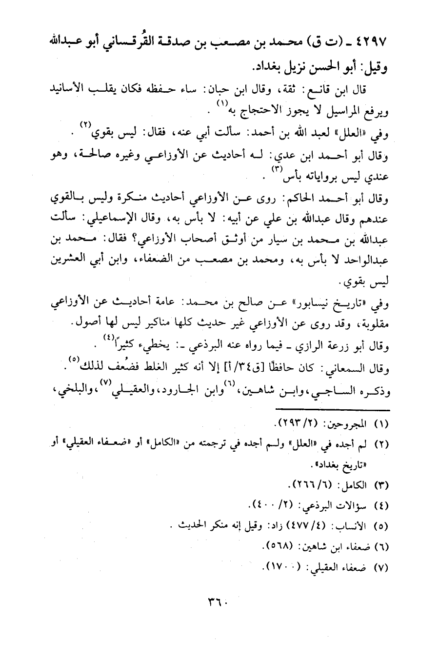 4297 - (ت ق) محمد بن مصعب بن صدقة القرقساني أبو عبد الله وقيل: أبو الحسن نزيل بغداد.