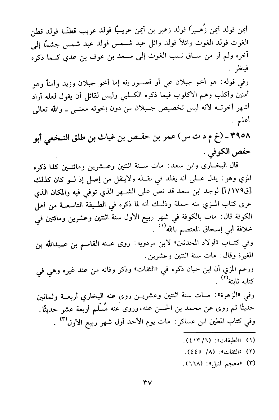 3958 - (خ م د ت س) عمر بن حفص بن غياث بن طلق النخعي أبو حفص الكوفي.