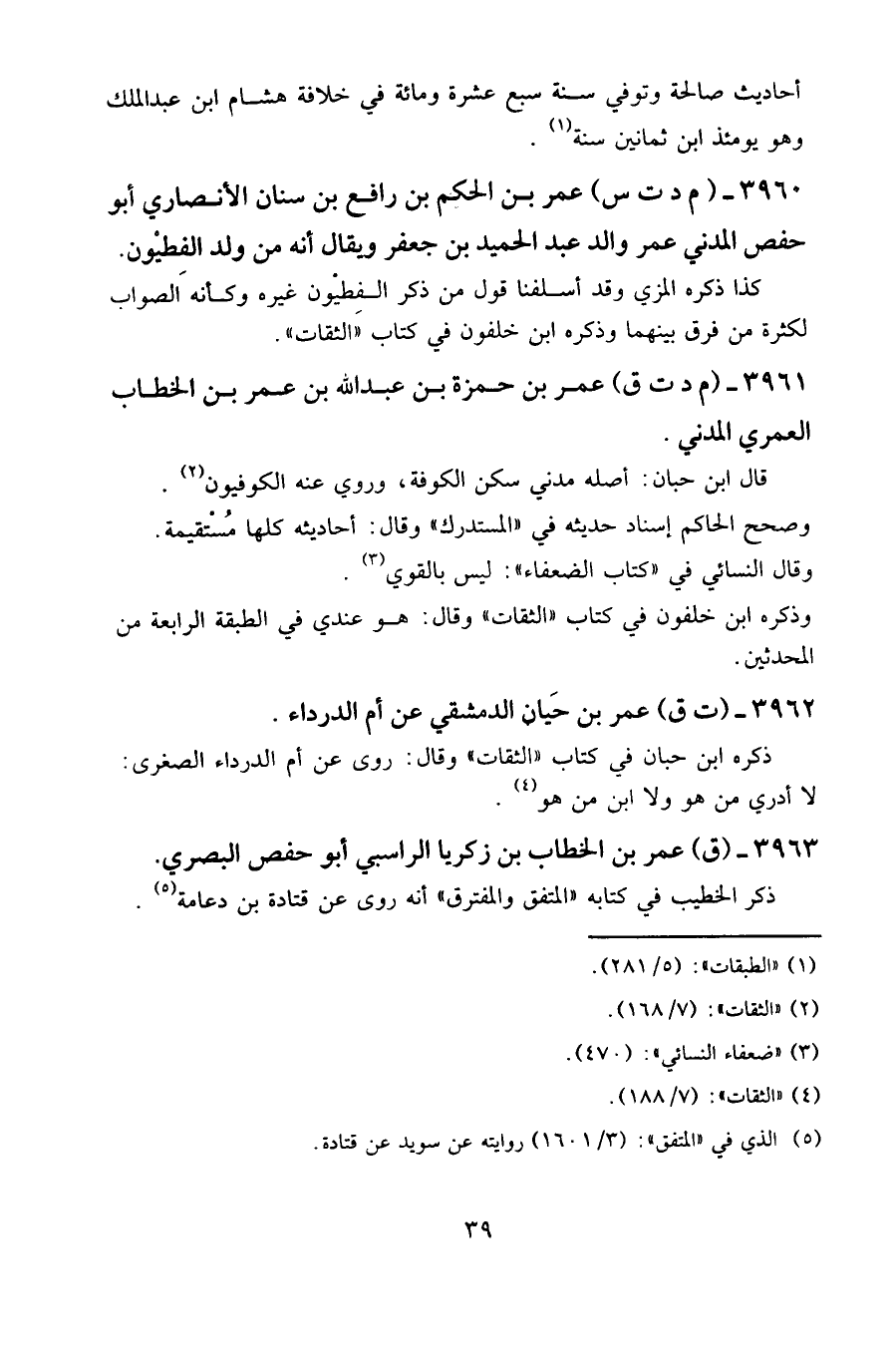 3962 - (ت ق) عمر بن حيان الدمشقي عن أم الدرداء.