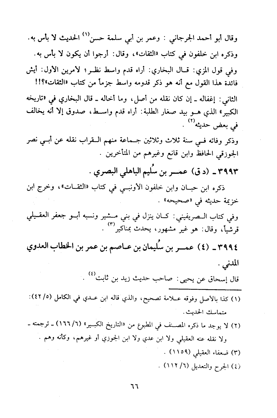 3994 - (4) عمر بن سليمان بن عاصم بن عمر بن الخطاب العدوي المدني.